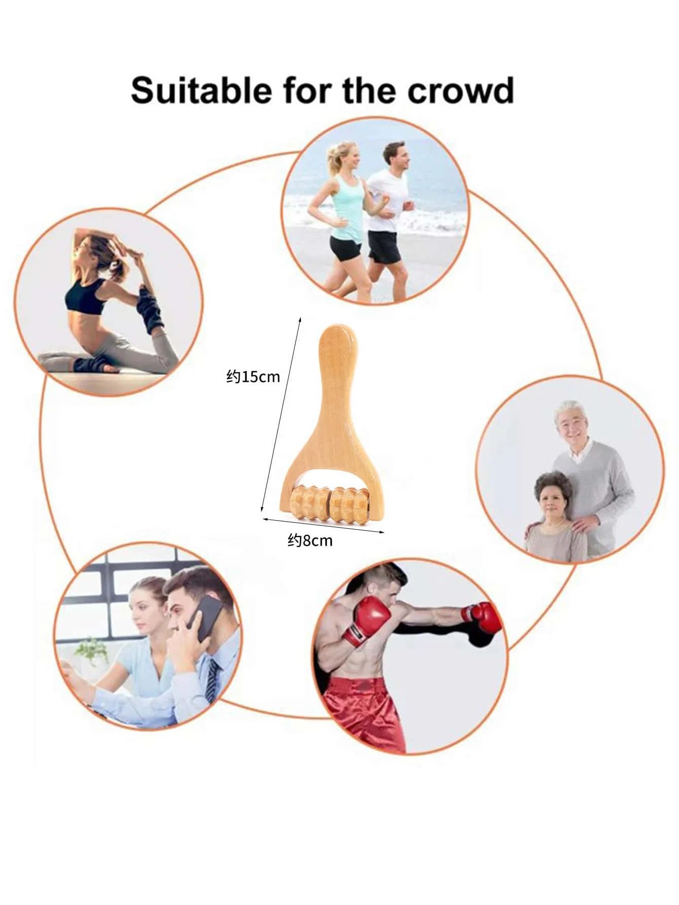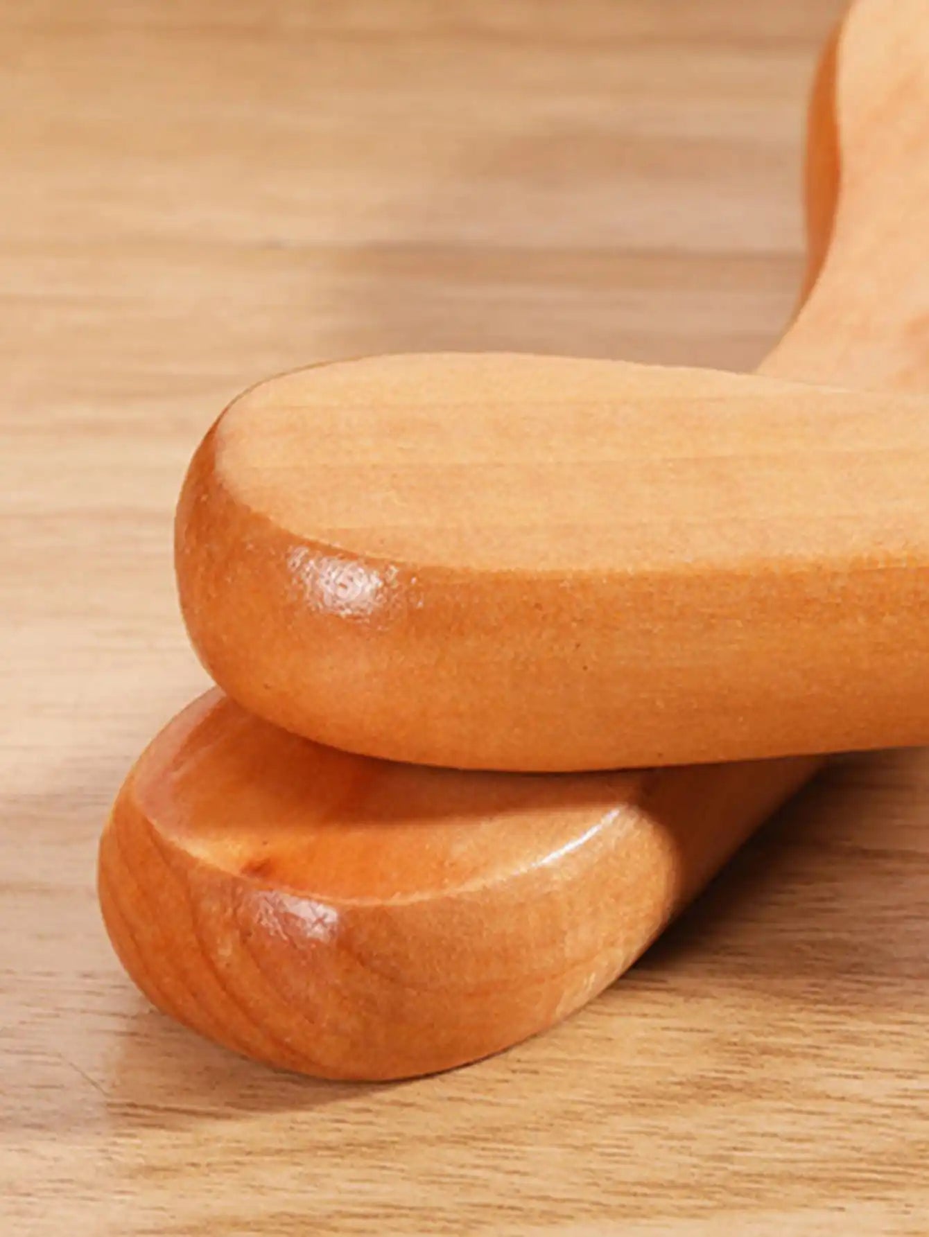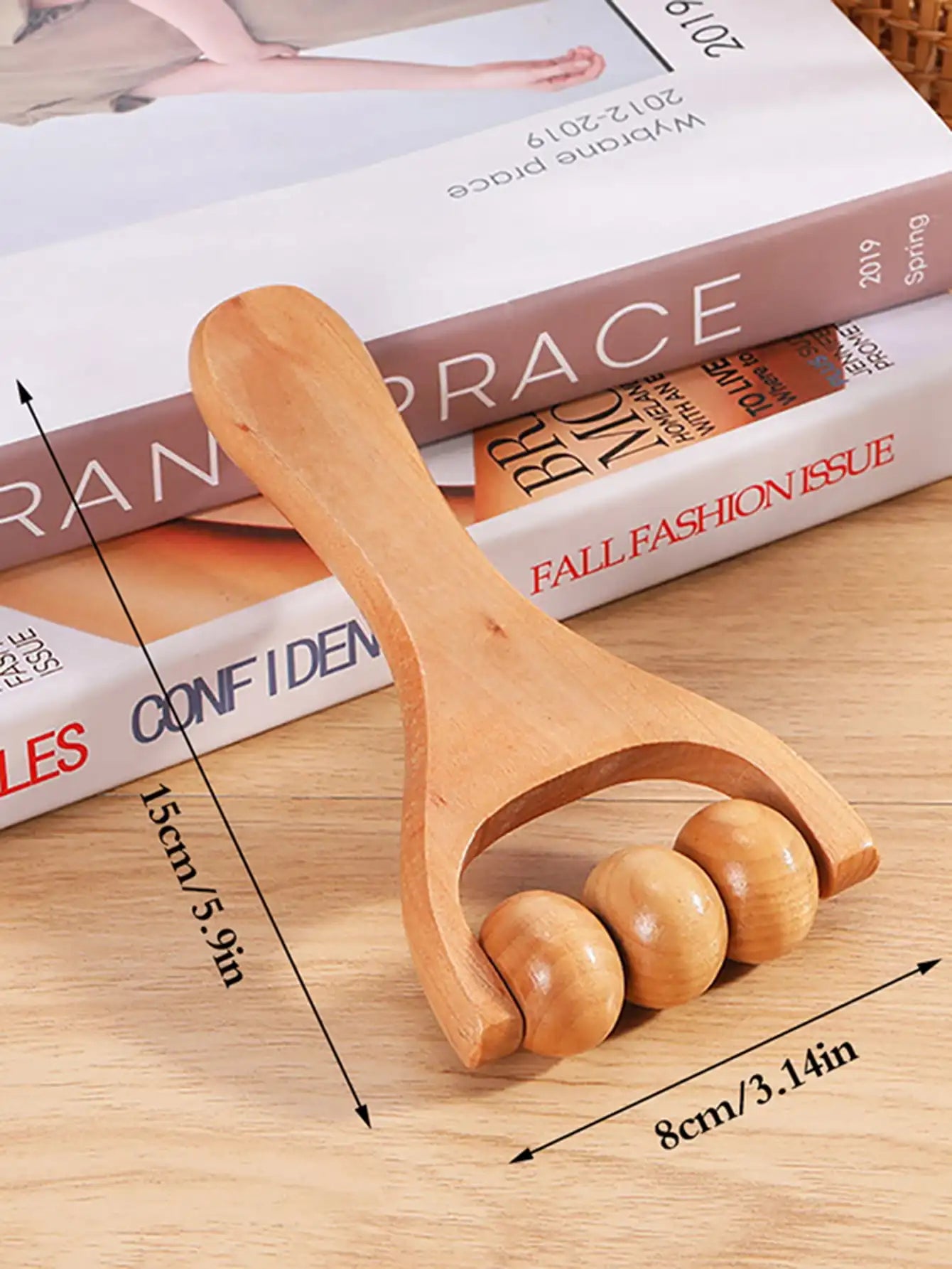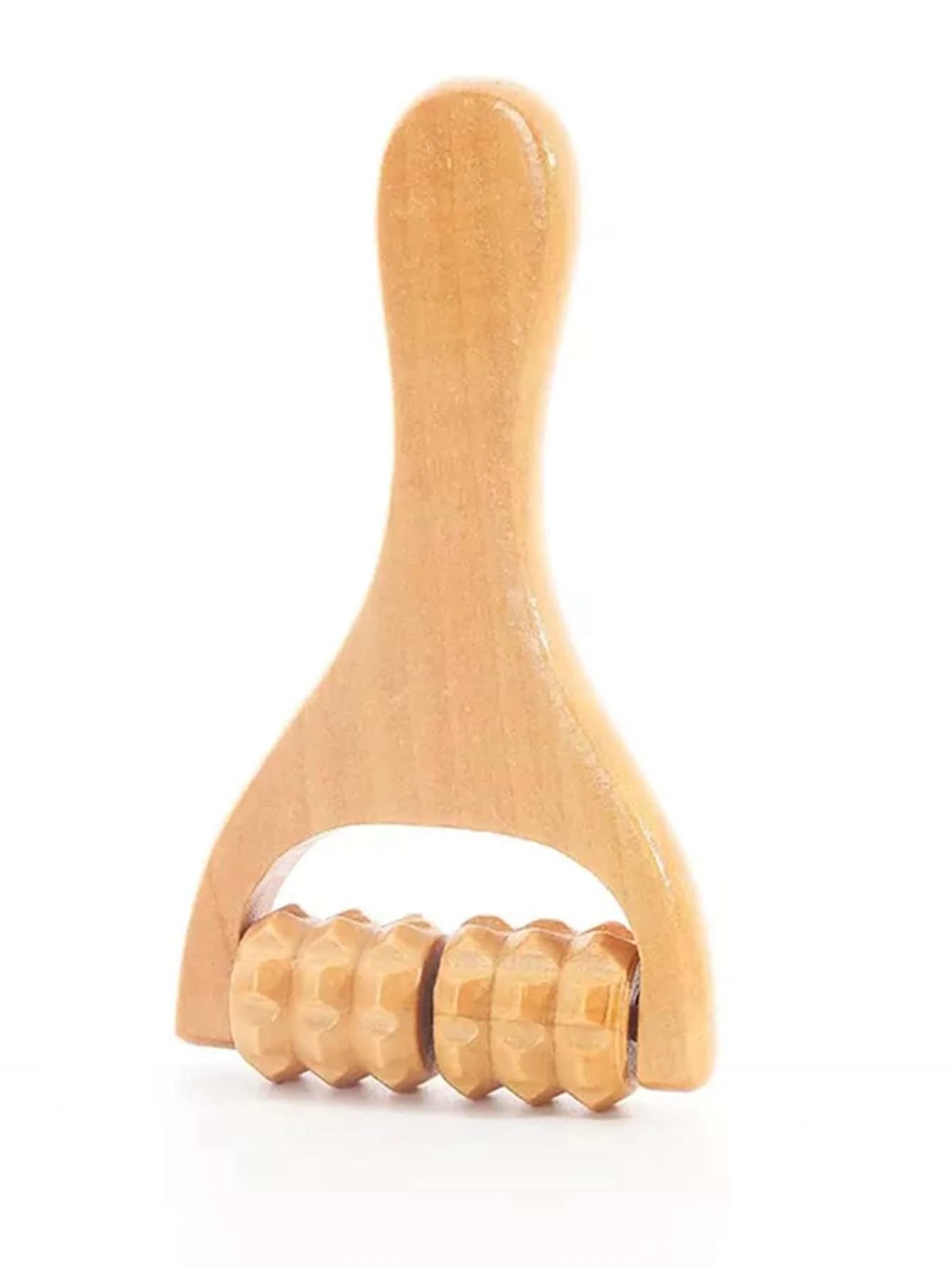The ergonomic wooden rollers gently glide over your skin, applying even pressure to: